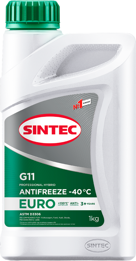 Антифриз SINTEC Euro G11 green -40 – готовая к применению высококачественная низкозамерзающая охлаждающая жидкость. Изготовлена из высококачественного моноэтиленгликоля и пакета присадок на основе гибридной технологии, специально адаптированной для российских условий эксплуатации. Обеспечивает правильный тепловой режим эксплуатации двигателя, предотвращает появление коррозии и отложений в системе охлаждения.