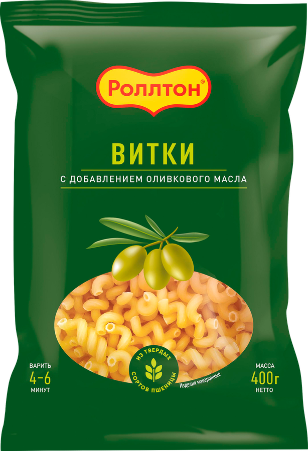 Макароны РОЛЛТОН Витки, с оливковым маслом приготовлены из твердых сортов пшеницы. Они отлично держат форму, не развариваются и не слипаются друг с другом. Такой продукт станет хорошим выбором для приготовления запеканки, составит удачное сочетание с разнообразными соусами и может подаваться в качестве гарнира.