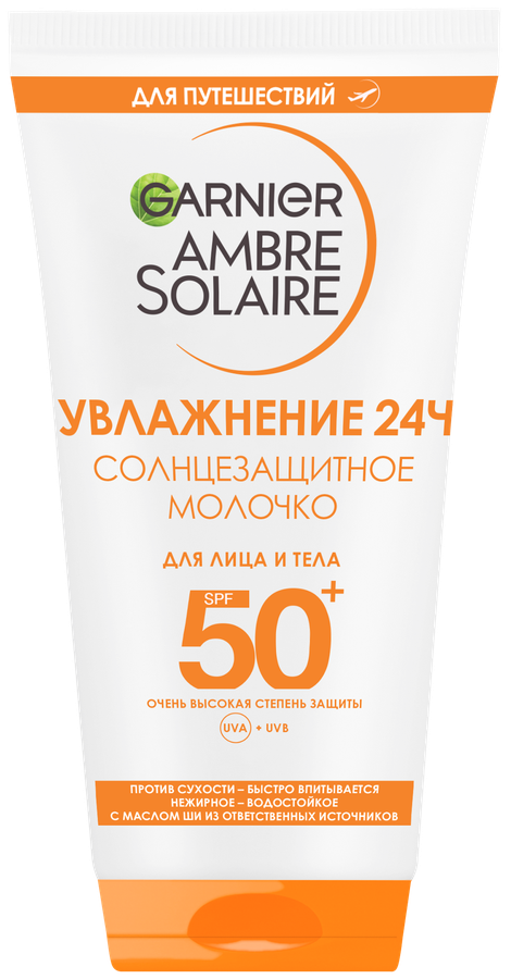 Молочко солнцезащитное для лица и тела GARNIER Ambre Solaire водостойкое с маслом ши SPF50+, 50мл