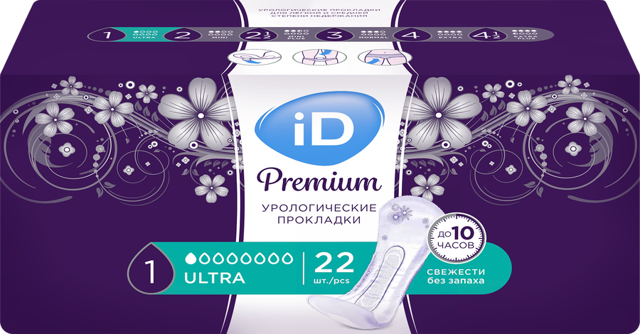 Прокладки урологические ID Light Premium Ultra Mini – ультратонкие и изящные, способны впитывать тот же объем влаги, что и обычная урологическая прокладка, и подходят для легкой и средней степени недержания. Незаметны под одеждой. Изделие на 30% тоньше обычной урологической прокладки. Гибкость и прочность: имеет эластичные волокна в составе материала и удлиненную до 80% зону фиксации к белью. Прокладки меняет форму под изгибы тела без смещений и протеканий, независимо от интенсивности нагрузки. Ощущение защищенности и уверенности. Двойная защита в виде водонепроницаемых бортиков и эластичных вставок предотвращает протекания даже при впитывании большого объема влаги за короткий промежуток времени. Особый дизайн изделия подходит для тонкого женского белья. Изящные принты на прокладках отвечают потребности каждой женщины в красоте и утонченности во всем. До 10 часов свежести. Технология EverFresh блокирует, маскирует и устраняет неприятный запах в течение всего периода ношения.