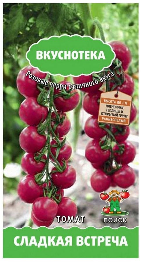 Семена ПОИСК Томат Сладкая встреча, раннеспелый сорт томата для выращивания в открытом грунте и теплицах. Дают урожай сладких плодов округлой формы. Подходят для свежего потребления, салатов и консервации. Сорт отличается устойчивостью к основным заболеваниям томатов, хорошей урожайностью и дружным созреванием. Растения компактные, удобны для небольших участков.