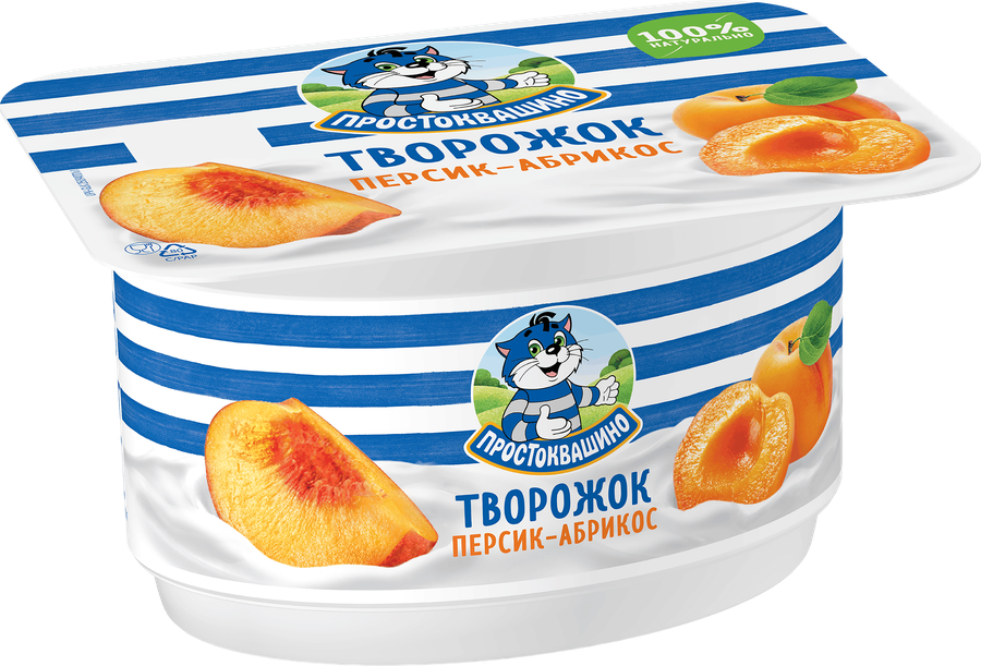 Творог обезжиренный, нормализованные сливки, наполнитель (вода, сахар, персик, абрикос, кукурузный крахмал, сок лимона, натуральныйароматизатор, загустители – пектины, гуаровая камедь, красители экстракт паприки, куркумин), сахар. Может содержать следыглютена, орехов, соевого лецитина, фрагменты фруктовой косточки.
